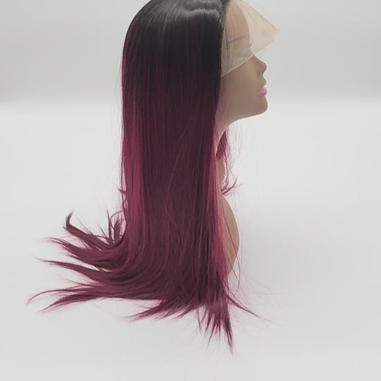 Turn heads with this stunning 24-inch T1B/Red Synthetic Lace Frontal Wig — the perfect blend of natural depth and vibrant color. Featuring a soft T1B (natural black with subtle brown undertones) base that transitions to rich red accents, this wig delivers a bold, eye-catching look without sacrificing everyday wearability.